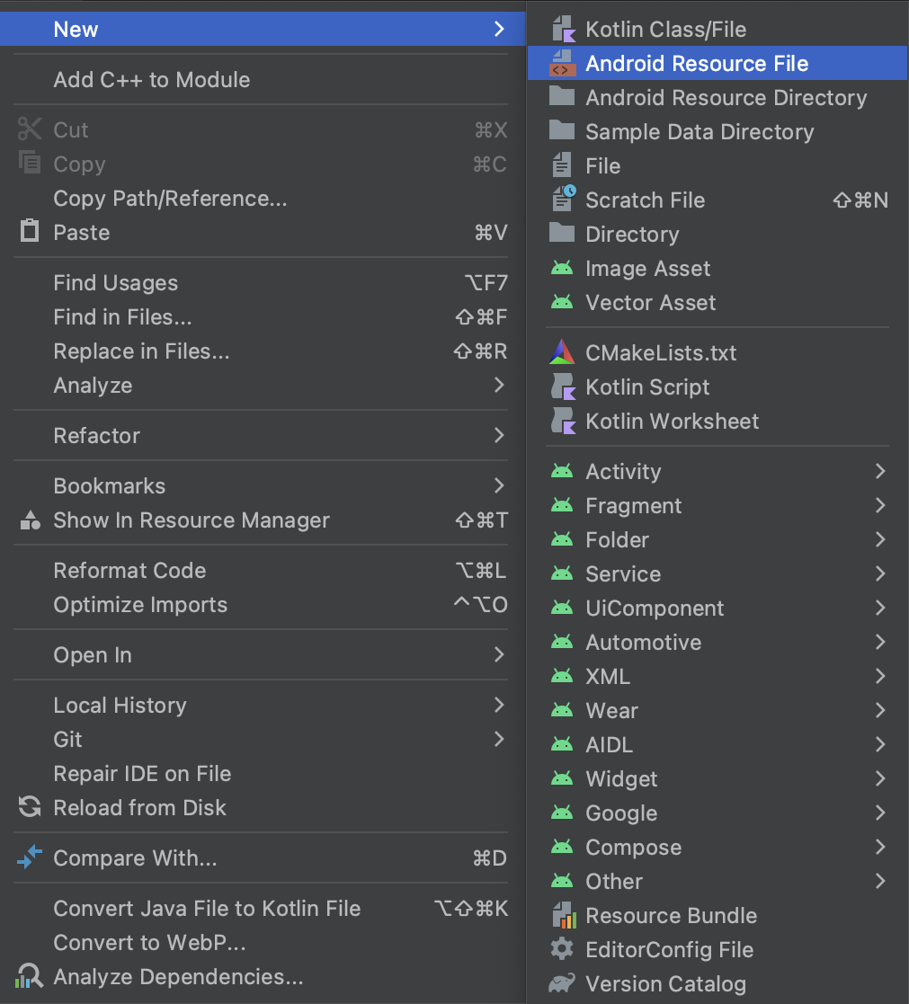 ④ values 마우스 우클릭 → New → Android Resource File