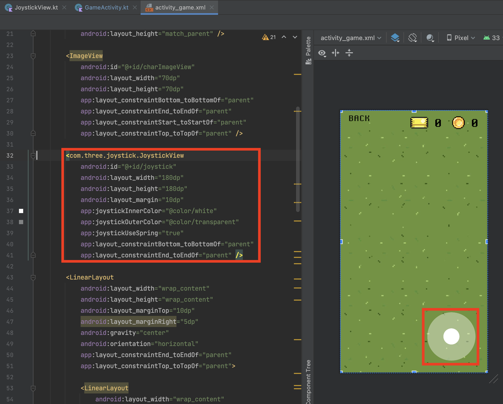4. 프로젝트의 xml에서 Joystick View 사용하기