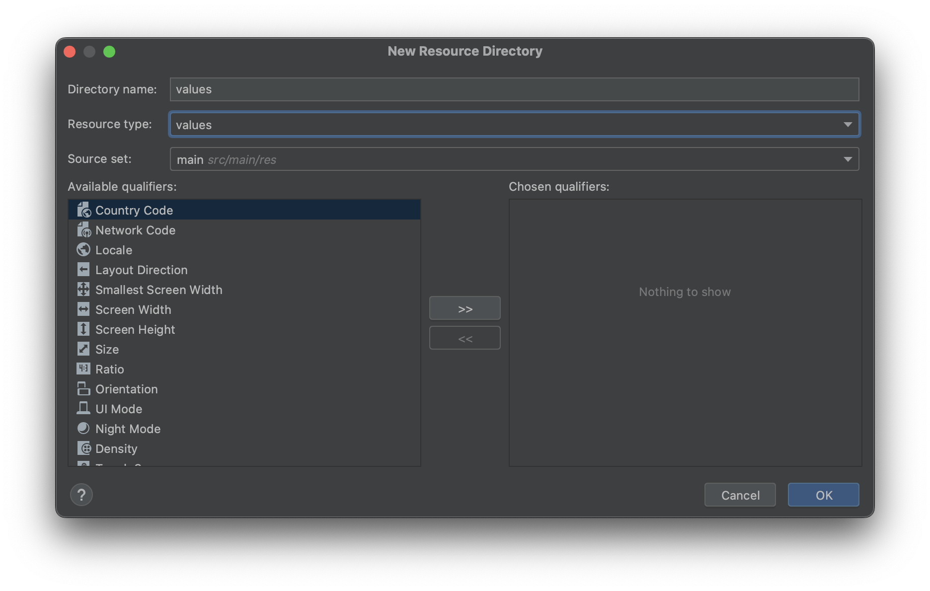 ② joystick → 마우스 우클릭 → New Android Resource Directory