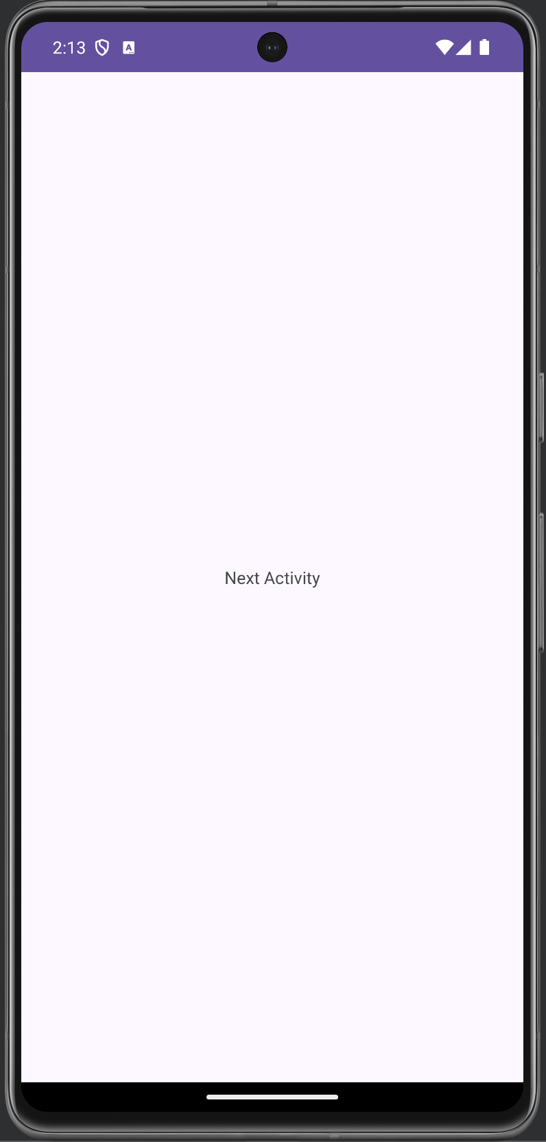 <?xml version="1.0" encoding="utf-8"?> <androidx.constraintlayout.widget.ConstraintLayout xmlns:android="http://schemas.android.com/apk/res/android" xmlns:app="http://schemas.android.com/apk/res-auto" xmlns:tools="http://schemas.android.com/tools" android:layout_width="match_parent" android:layout_height="match_parent" tools:context=".NextActivity"> <TextView android:layout_width="wrap_content" android:layout_height="wrap_content" android:text="Next Activity" app:layout_constraintBottom_toBottomOf="parent" app:layout_constraintEnd_toEndOf="parent" app:layout_constraintStart_toStartOf="parent" app:layout_constraintTop_toTopOf="parent" /> </androidx.constraintlayout.widget.ConstraintLayout>