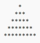 for(int i = 1; i <= 5; i++) { for(int j = 5 - i; j >= 1; j--) { System.out.print(" "); } for(int k = 1; k <= 2*i-1; k++) { System.out.print("*"); } System.out.println(); }<최종 소스코드>
