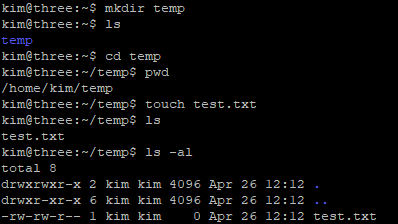 mkdir temp // 디렉터리 생성