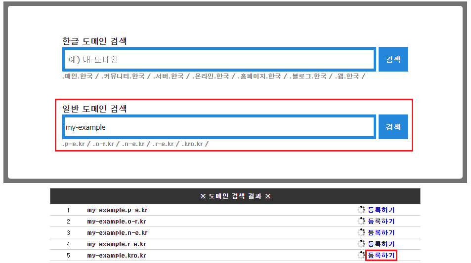 아래와 같이 도메인 이름을 검색하여 등록합니다.