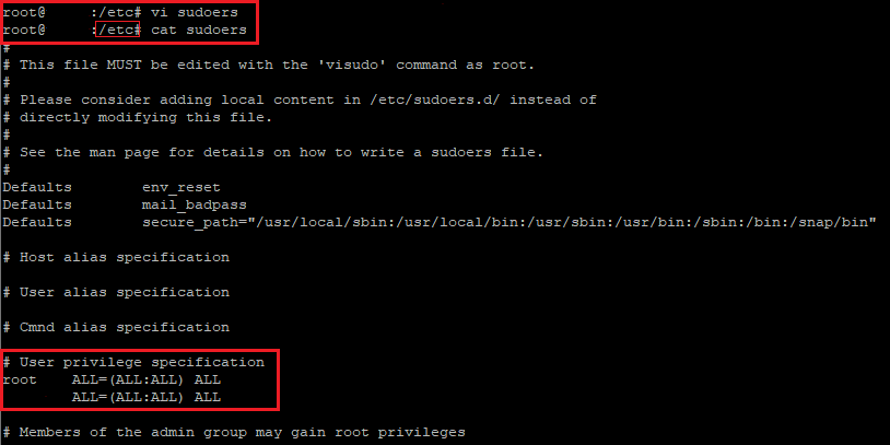 # vi /etc/sudoers