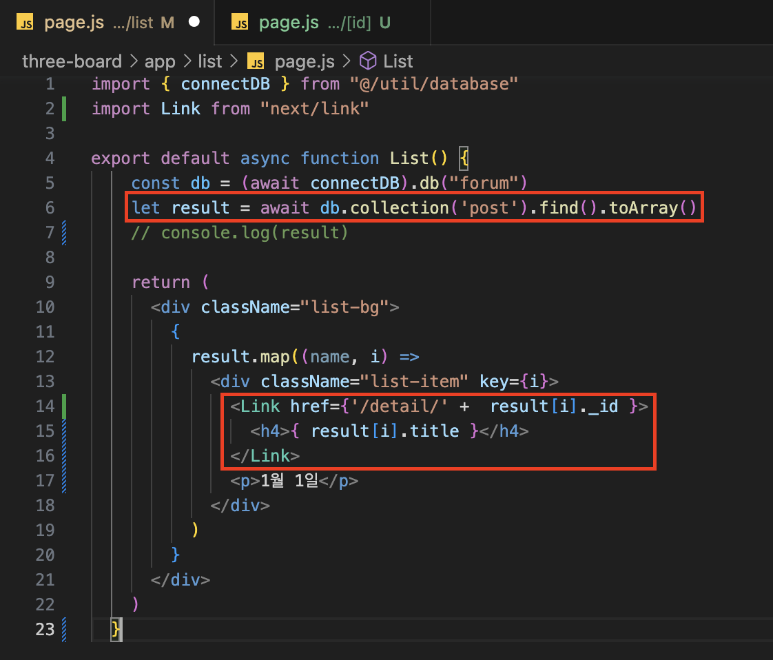 데이터베이스를 통해 [array] 내 {object} 가져올 경우, <Link> 태그 내 href 속성 지정하는 방법