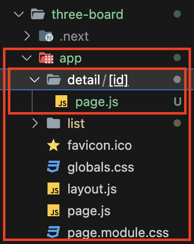 예를 들어 아래와 같이 /detail/[id]/page.js 디렉터리와 폴더를 만들어두면