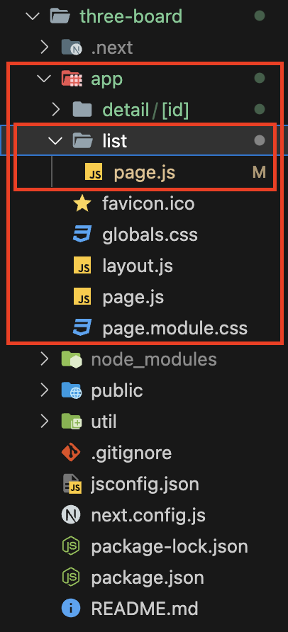 예를 들어, app이라는 최상위 폴더 내에 list 폴더 생성 및 page.js 파일 생성만으로