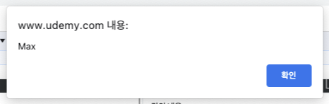 알림창에 "Max" 표시 후, 콘솔창에 "Manu" 출력 함수 내부에서 선언된 변수(userName)는 외부 변수(userName)와 이름이 같더라도