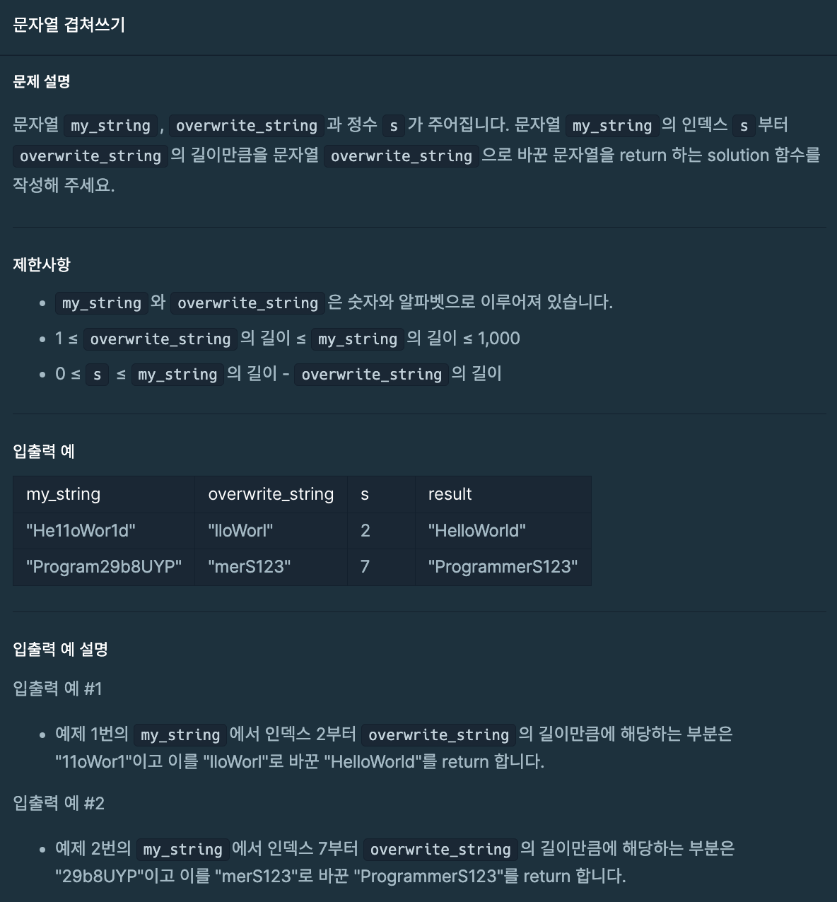 function solution(my_string, overwrite_string, s) { var answer = ''; return answer; }최종 코드