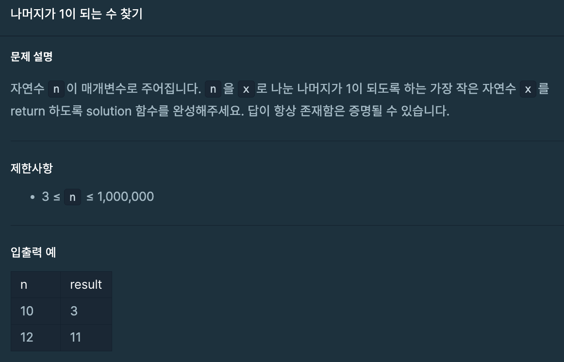 그저 for문을 돌려 나머지가 1이 되는 수를 찾으면 되니까... 너무 쉽잖아?라고 생각했는데요.
